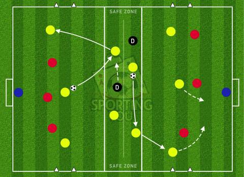 - If defenders in the safe zone wins possession, combined with reds to play through the gates