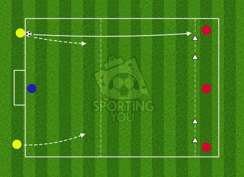 - A defender starts by passing the ball to the 3 attackers, who aim to score as quickly as they can