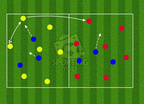 - Blue defenders locked - if they win possession pass into the coach to score