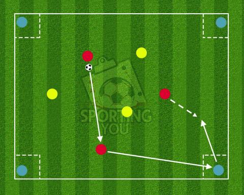- Team with possession to try and score by passing the ball into the one of the four target players